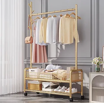 Multipurpose Clothes Rack with Bottom Shelf Two Tier Closet Organizer Coat Hanger Freestanding Clothes Stand at Wholesale Price