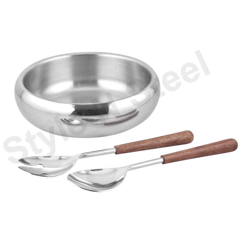 Multipurpose Deep Salad Bowl Double Wall With Server Spoon Wooden Handle