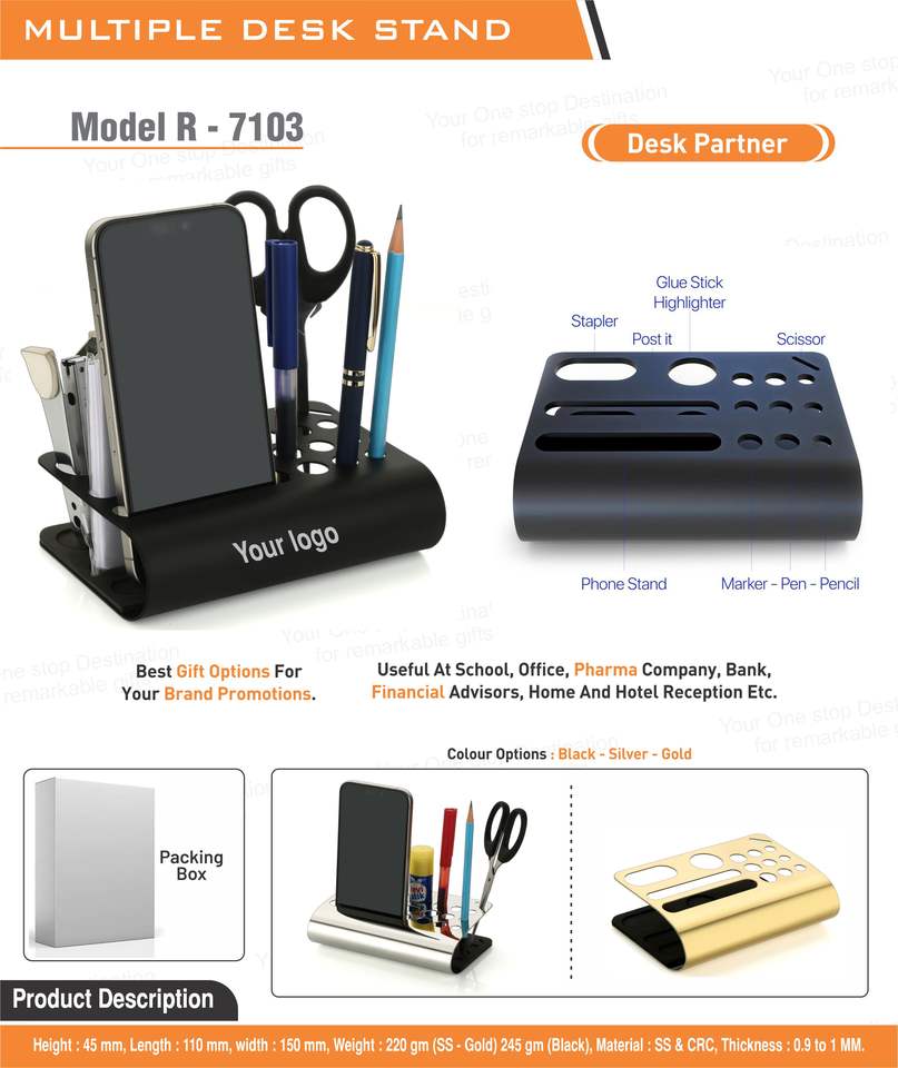 Multipurpose Desk Organizer with Phone Stand Pen Pencil Holder Stapler Scissor Storage for Office Home Use