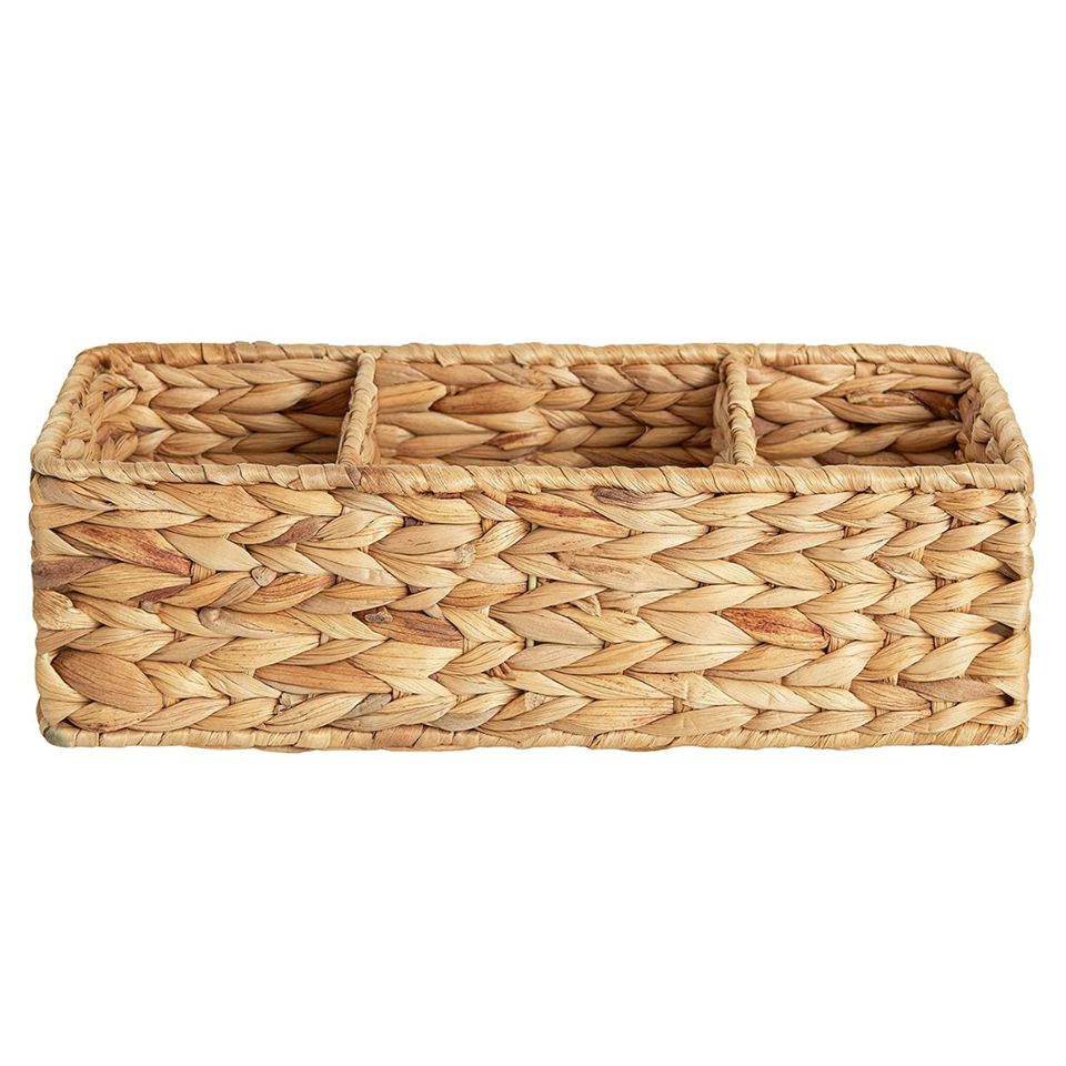 Multipurpose Hand Woven Water Hyacinth Storage Baskets Wicker Baskets with 3 Sections for Shelves Toilet Tank Baskets