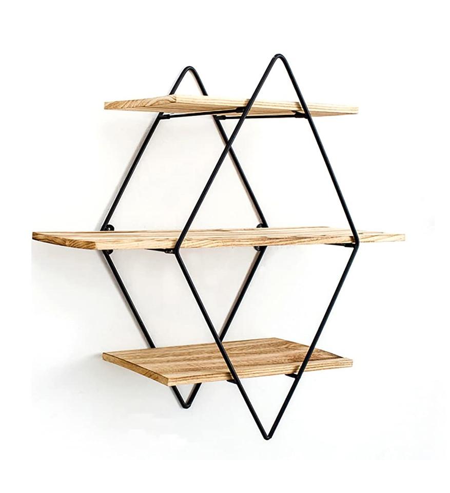 Multipurpose Latest Customised Natural Wood And Metal Wall Hanging Rack Shelf For Book or Plant Rack Home Decor