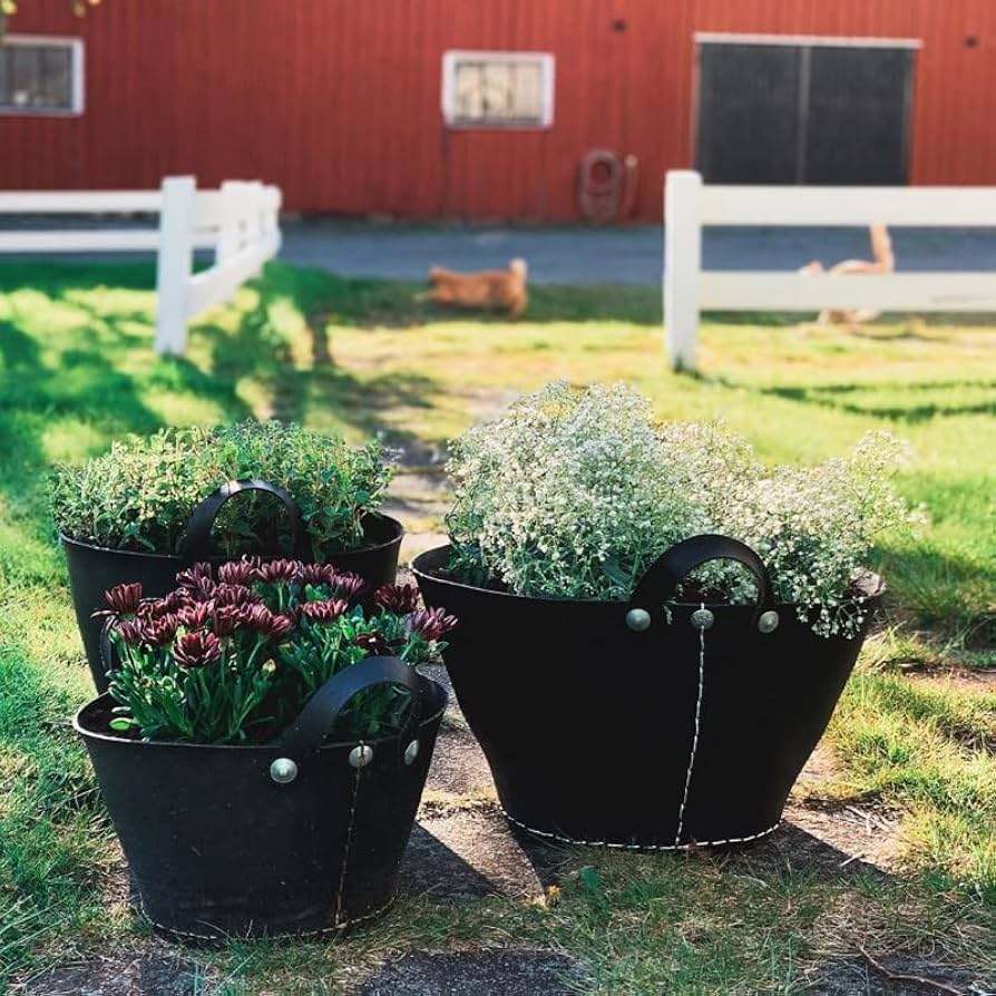 Multipurpose Recycled Rubber Rectangle Shape Basket Handle Durable Handmade Tire Flower Pot Sustainable Garden Storage Organizer