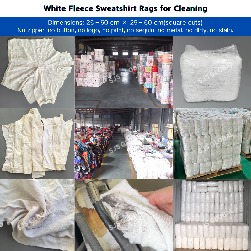 Multipurpose White Fleece Sweatshirt Rags 100 Cotton Various Industrial Wiping Rags for Cleaning