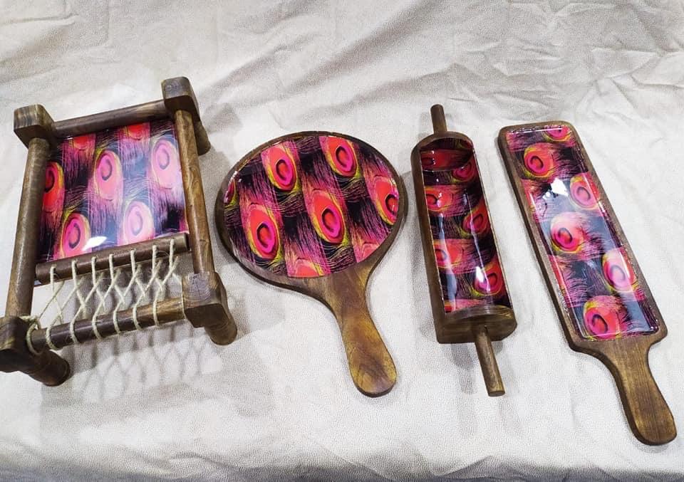 Multipurpose Wooden Serving tray Set /MDF Board Printed Tray Plates Set Best Quality Dinnerware Serving Trays Dinner Set Dishes