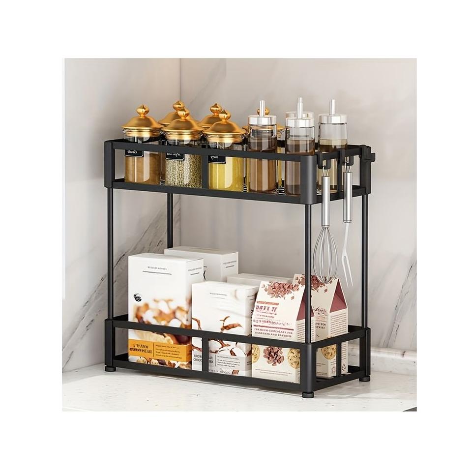 Multipurpose metal kitchen rack created to provide space saving storage for plates bowls jars and utensils