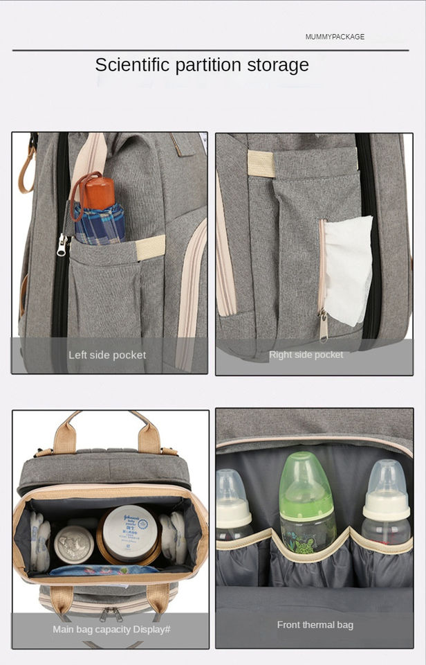 Mummy Bag Folding Crib Mom Backpack Large Capacity Multi-purpose Travel Bag With Usb Charging Port