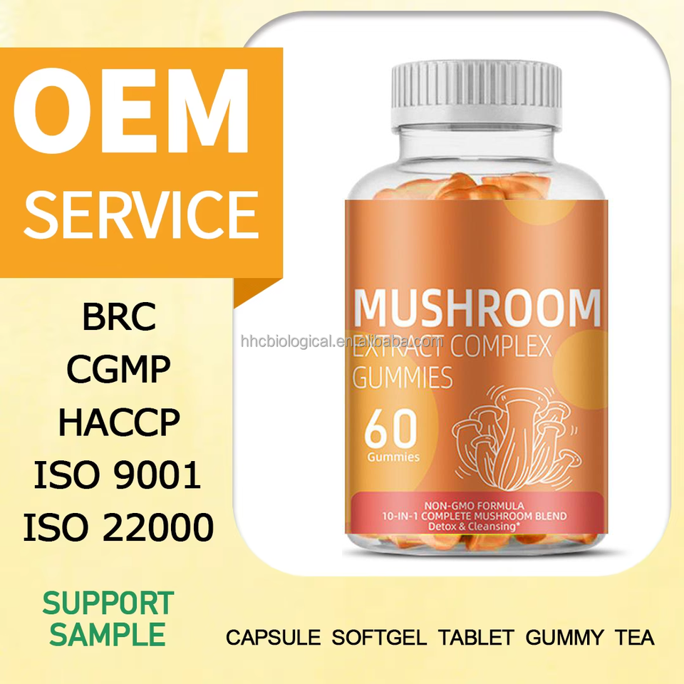Mushroom Gummies Lion's Mane Reishi Blend for Adult Brain Health Vegan Gluten-Free Fruit Flavor