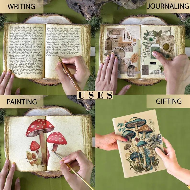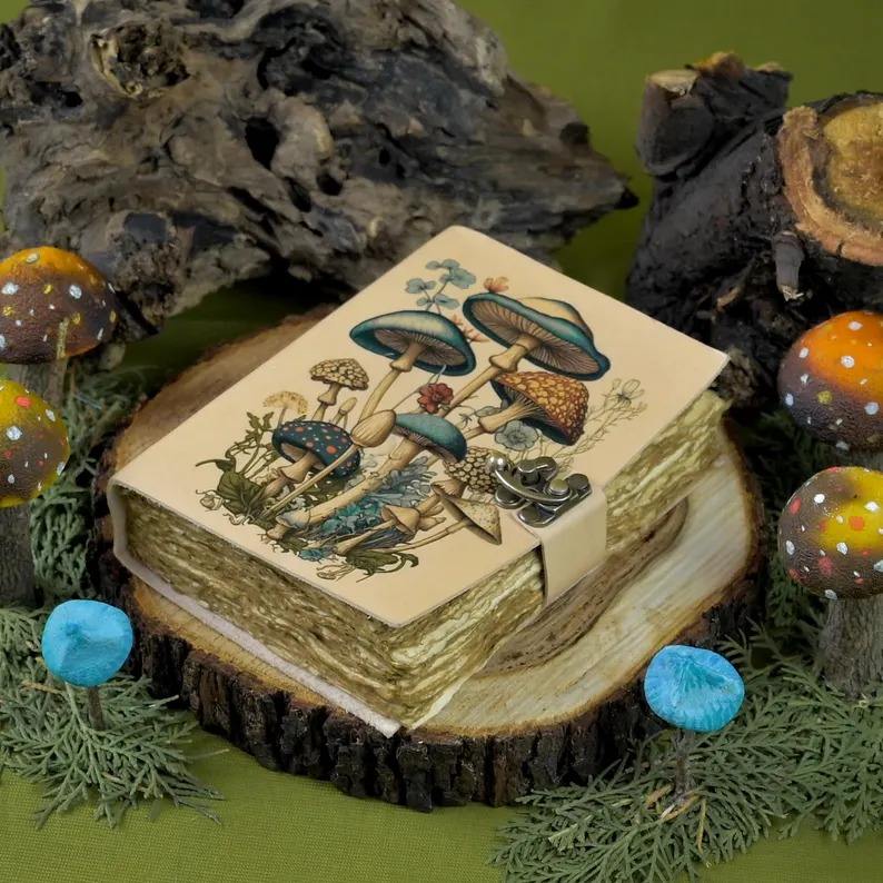 Type:Mushroom Printed Blank Spell Book of Shadows Leather Journal