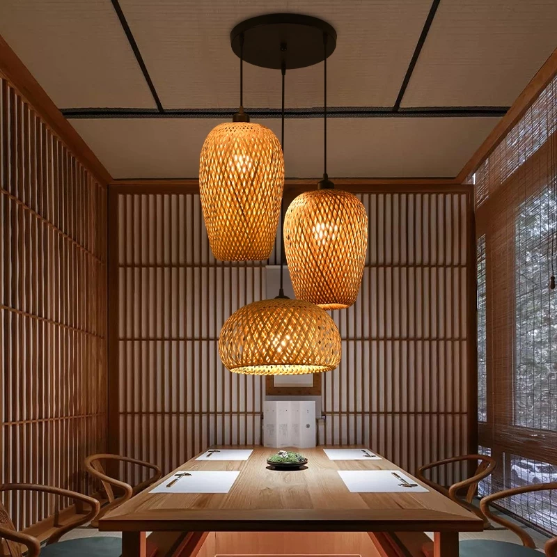 Mushroom-Style Rattan Pendant Lampshade - Handwoven Light Cover for Relaxed Home and Coffee Shop Vibes Cozy Rattan Lighting