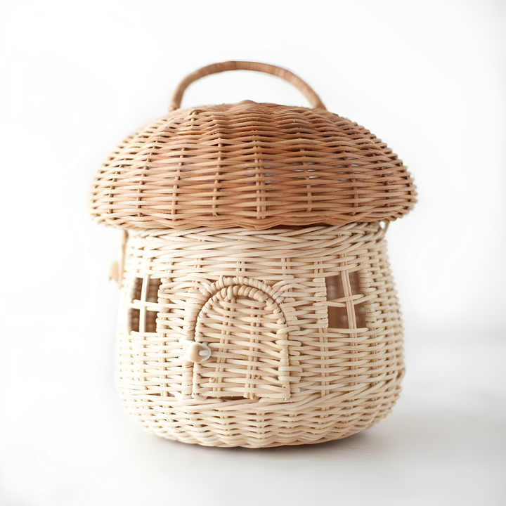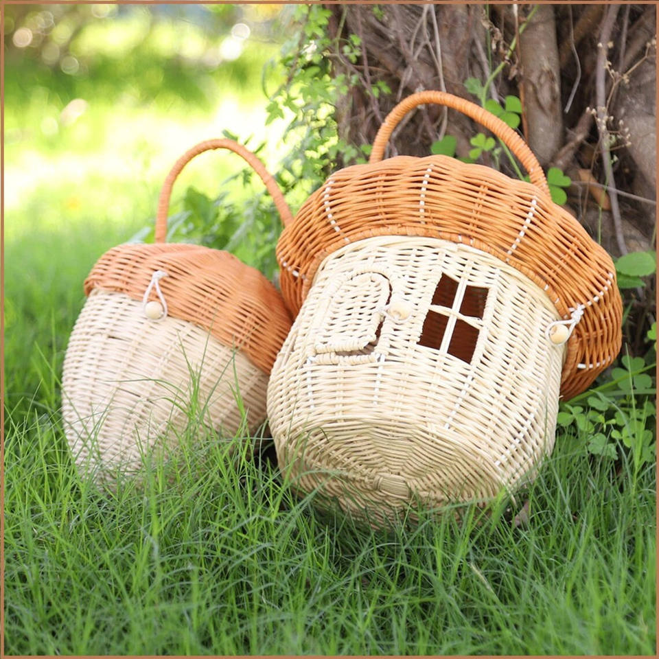Mushroom shaped rattan children hand bag kid toy handbag basket lovely natural wicker bags for babies