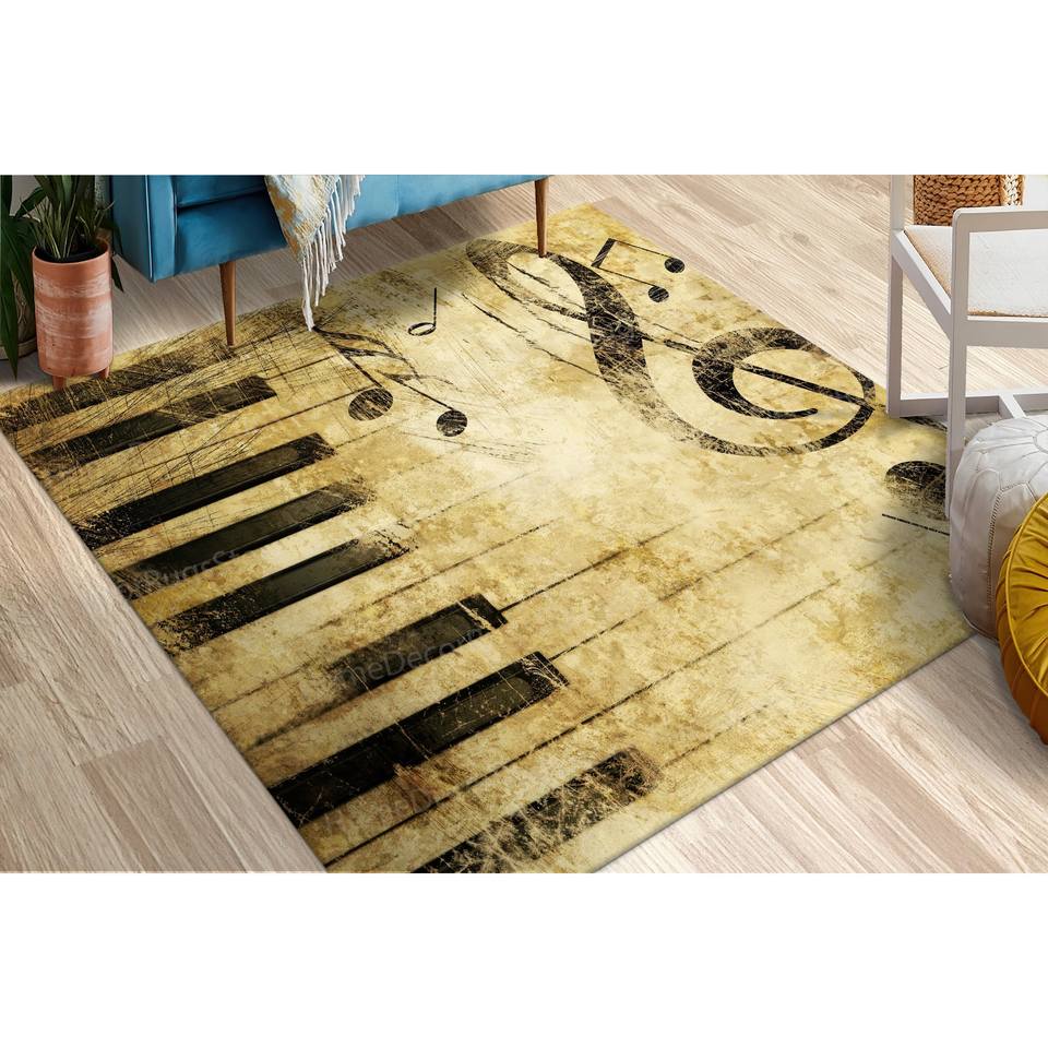 Music Notes Treble Clef Printed Rug, Non Slip, Round, Large,Chenille Rug