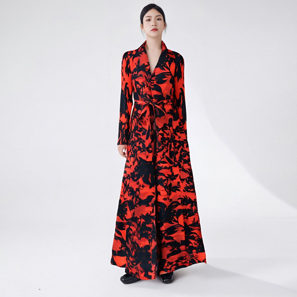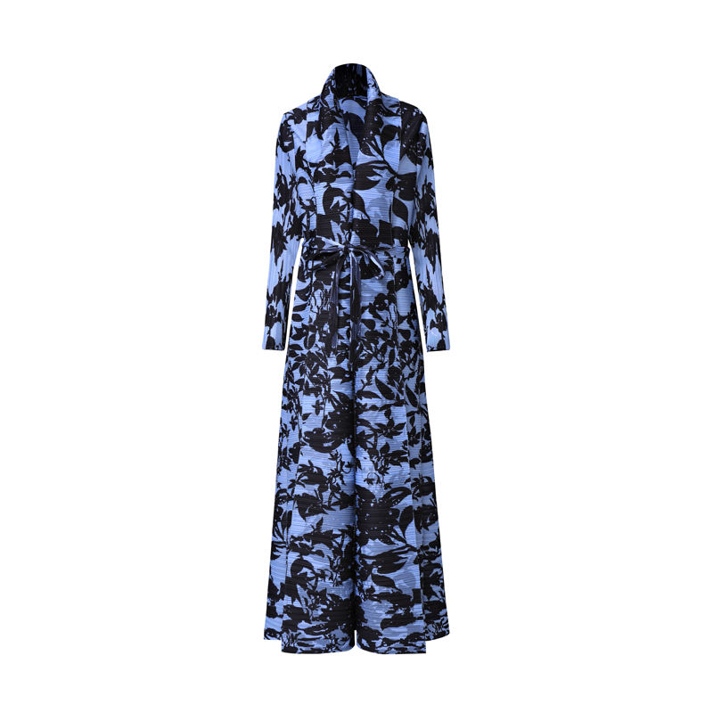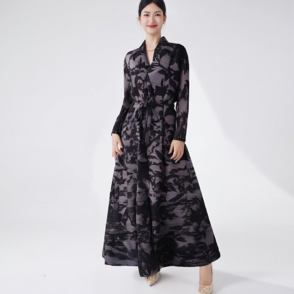 Muslim Abaya Dress Elegant Spring/Autumn Women's Long Sleeve Loose Fit Plus Size Pleated Ankle Length Four-Way Stretch Floral