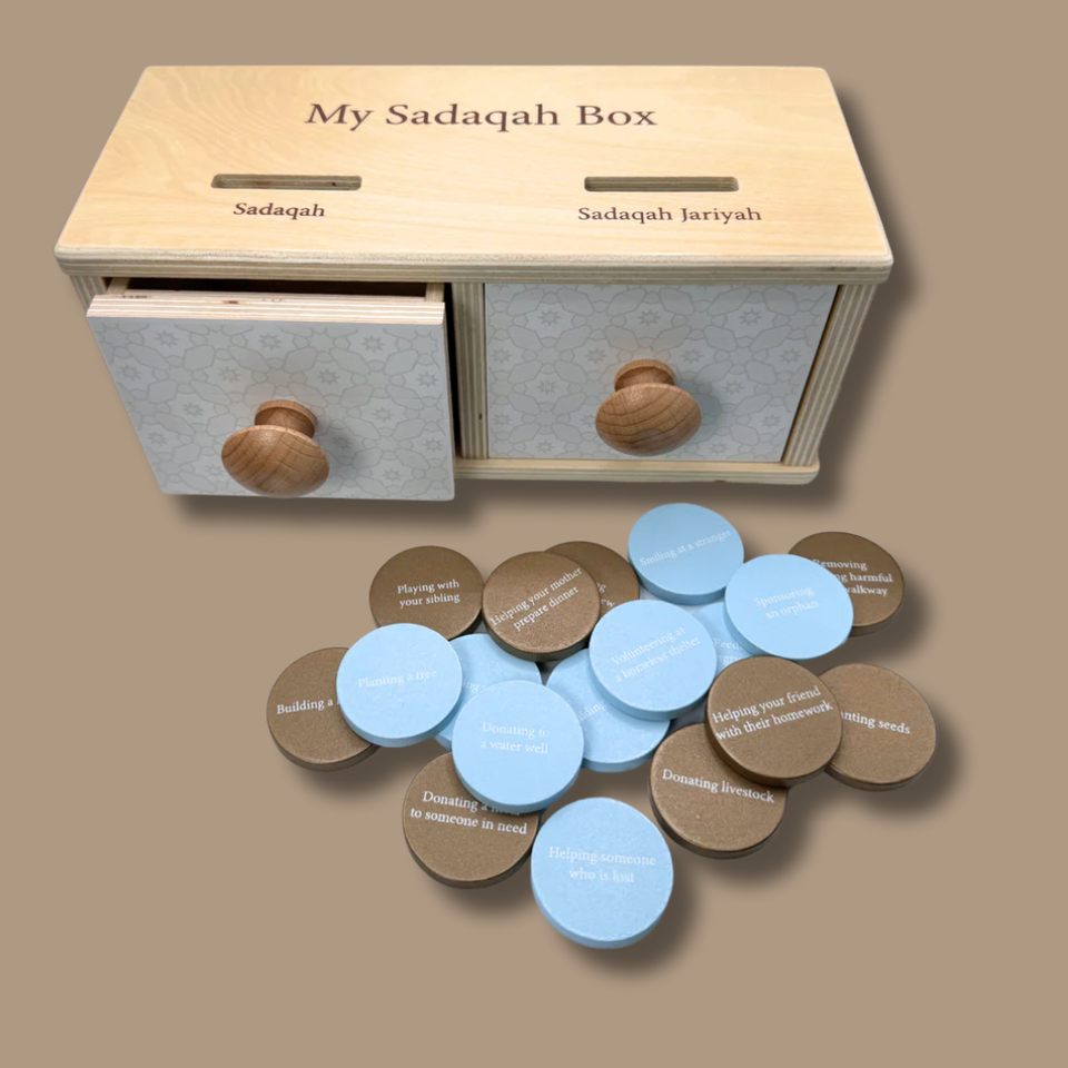 Muslim Baby Montessori Toy, Wooden Coin Drop Box for Learning Sadaqah Coin Box (Montessori)