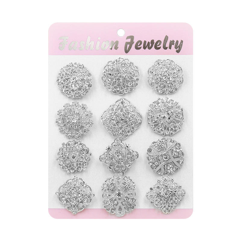 Muslim Fashion Card-Packaged Alloy Rhinestone Brooches Small Pin Corsages Accessories for Weddings Parties Gifts Wholesale