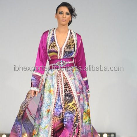 Muslim Female Digital Print Designer Dubai Fashion Kaftan With Belt