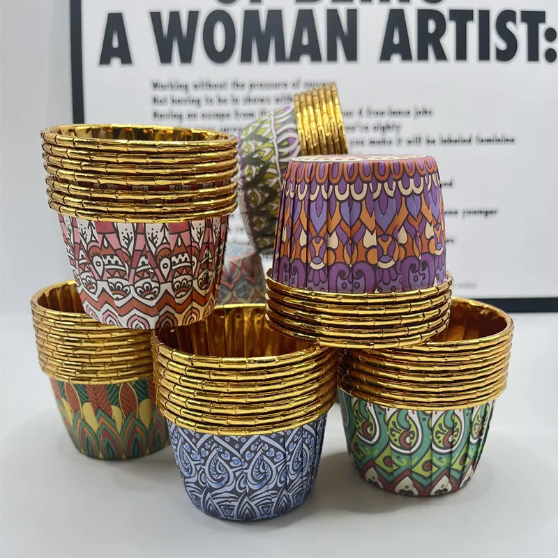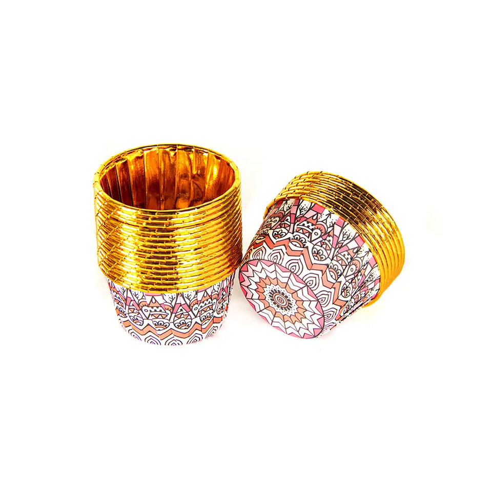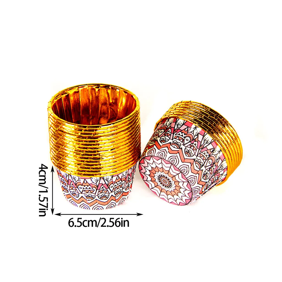 Muslim Festival Gold Foil Baking Cups Colorful Islamic Pattern Cupcake Wrappers for Eid Mubarak Party Dessert