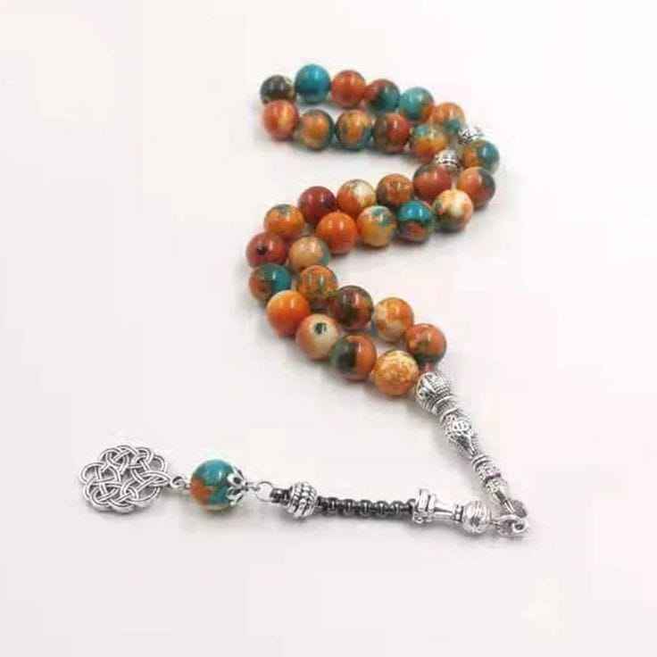 Muslim Kehribar Tasbeeh Rosary with Tiger Prayer Beads Natural Yellow and White Amber Lampwork & Crystal Glass Beads