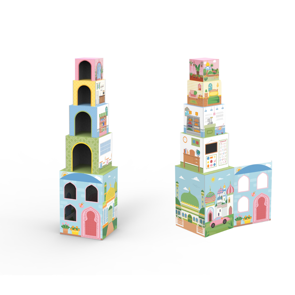 Muslim Kids Roleplay Toy, Wooden Mosque & Home Set Stacking Houses