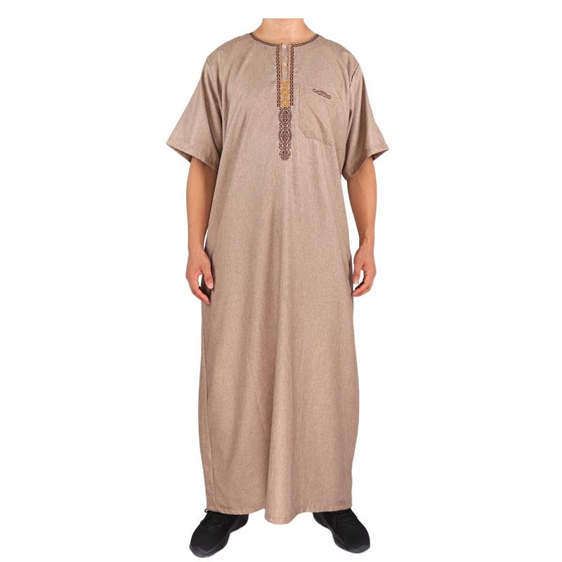 Traditional Men's Brown Light Dyed Chest Cut V-Neck Thobe Dubai Islamic Casual Clothing Long Sleeves Men's Short Sleeve V-Neck
