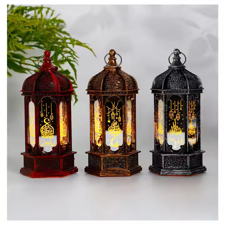 Muslim Modern Handmade LED Light Hanging Lantern Eid Mubarak Ramadan Party Table Ornaments New Silver Iron Crafts Decorations
