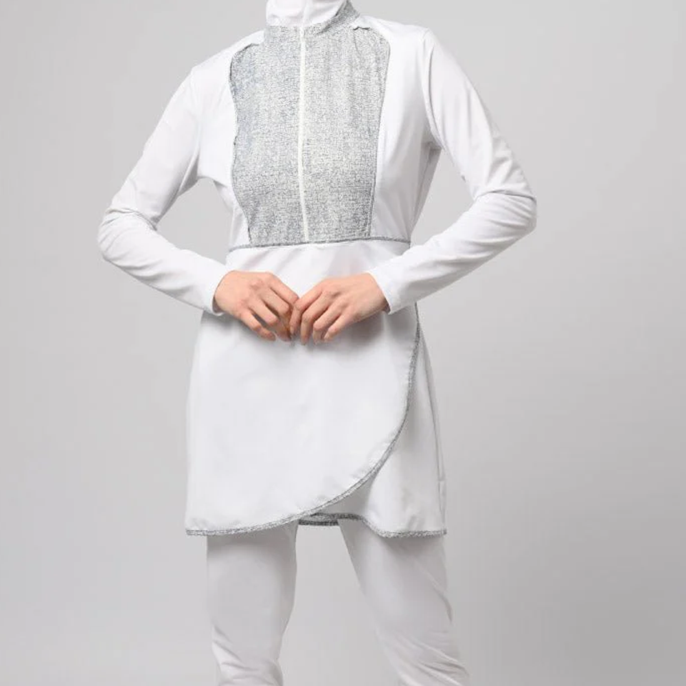 Modest Islamic Long Sleeve Swimwear Hijab Breathable Print 2-Piece Set Women Girls-Quick Dry Customizable Colors Front