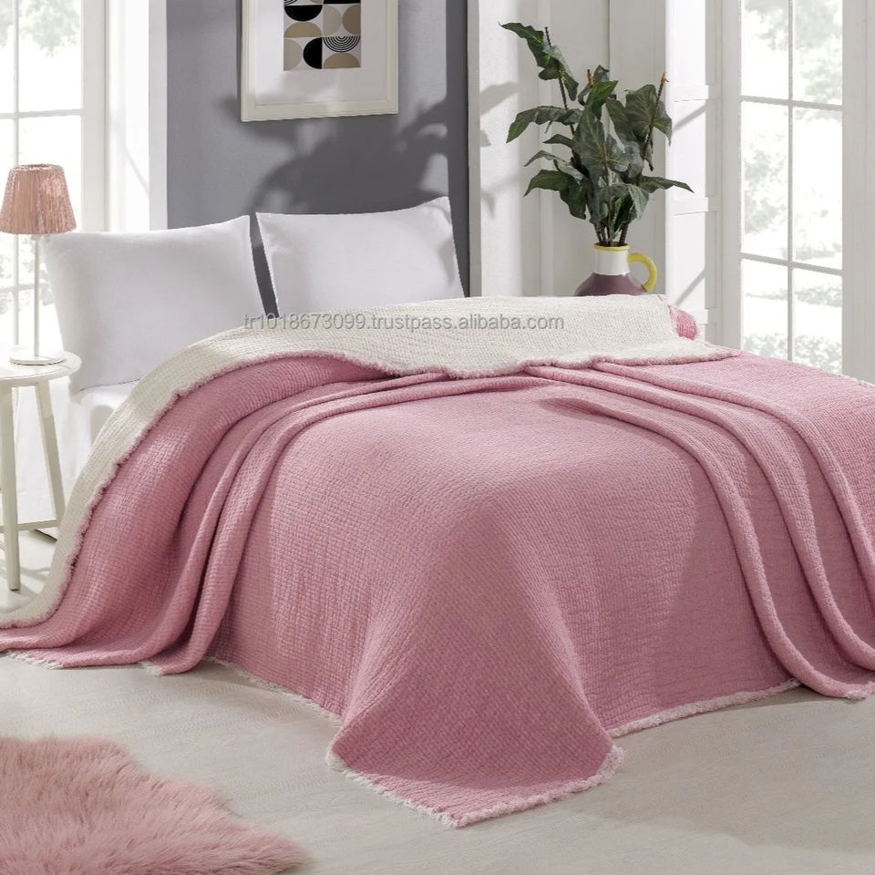 Muslin Weave Inside Cotton Fiber Filled 100% Cotton Blanket Bulky Heavy Thick 160x220cm 62x86inch Plain Collection Blanket