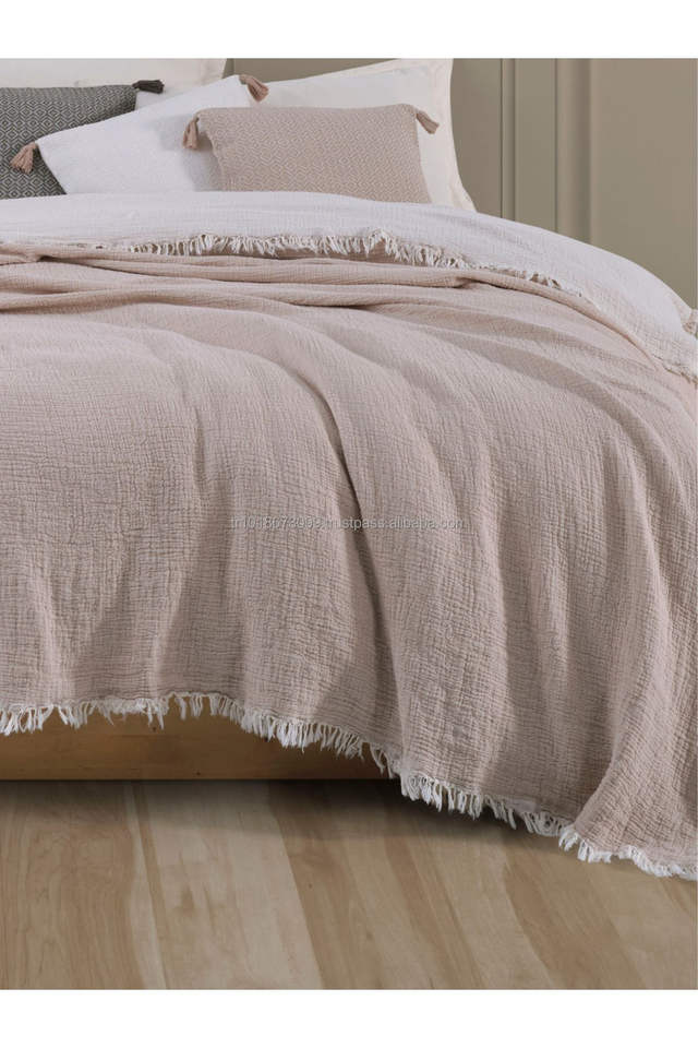 Mustard Double Muslin Blanket 240 X 260 cm Bedspread 100% Cotton Washed Organic Cotton Turkey Gauze Blankets