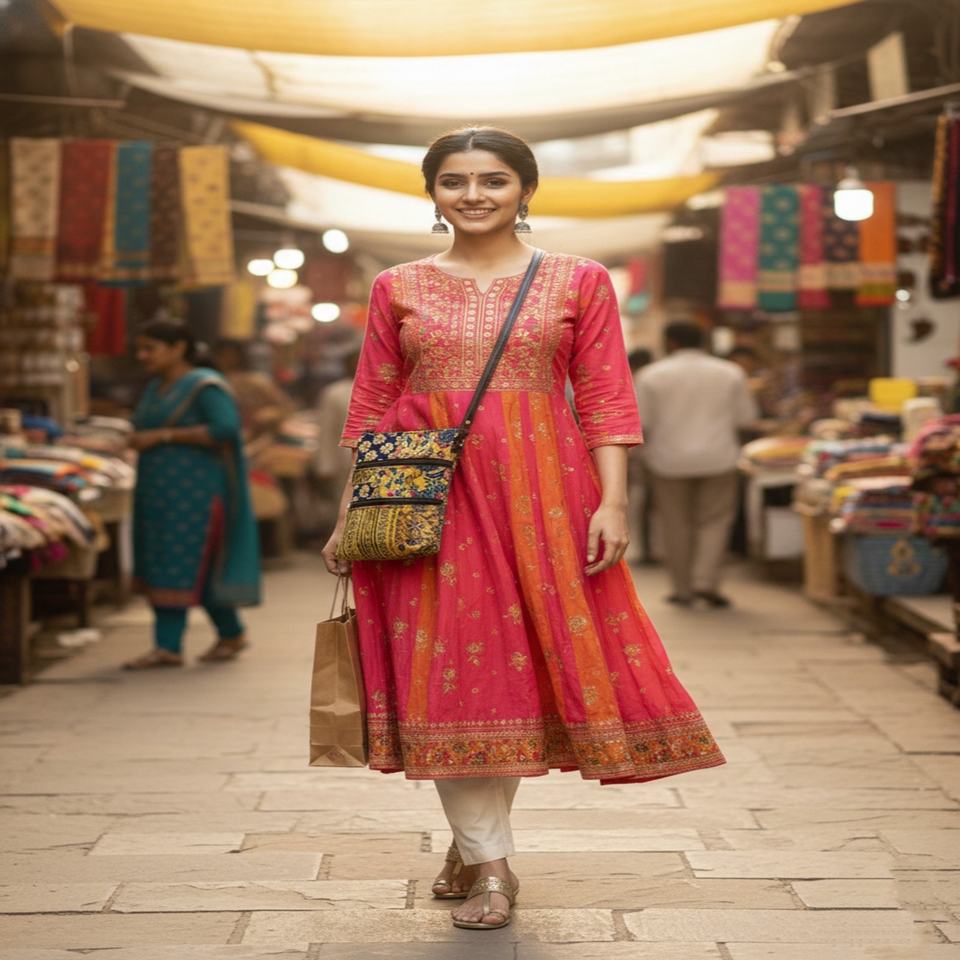 Multicolor Floral, Premium Braided Accents, Secure Magnetic Twist Lock, Adjustable Crossbody Strap, Multiple Compartments, Lightweight and easy to carry, Soft touch fabric finish, Durable stitching for daily use, Suitable for casual and evening use