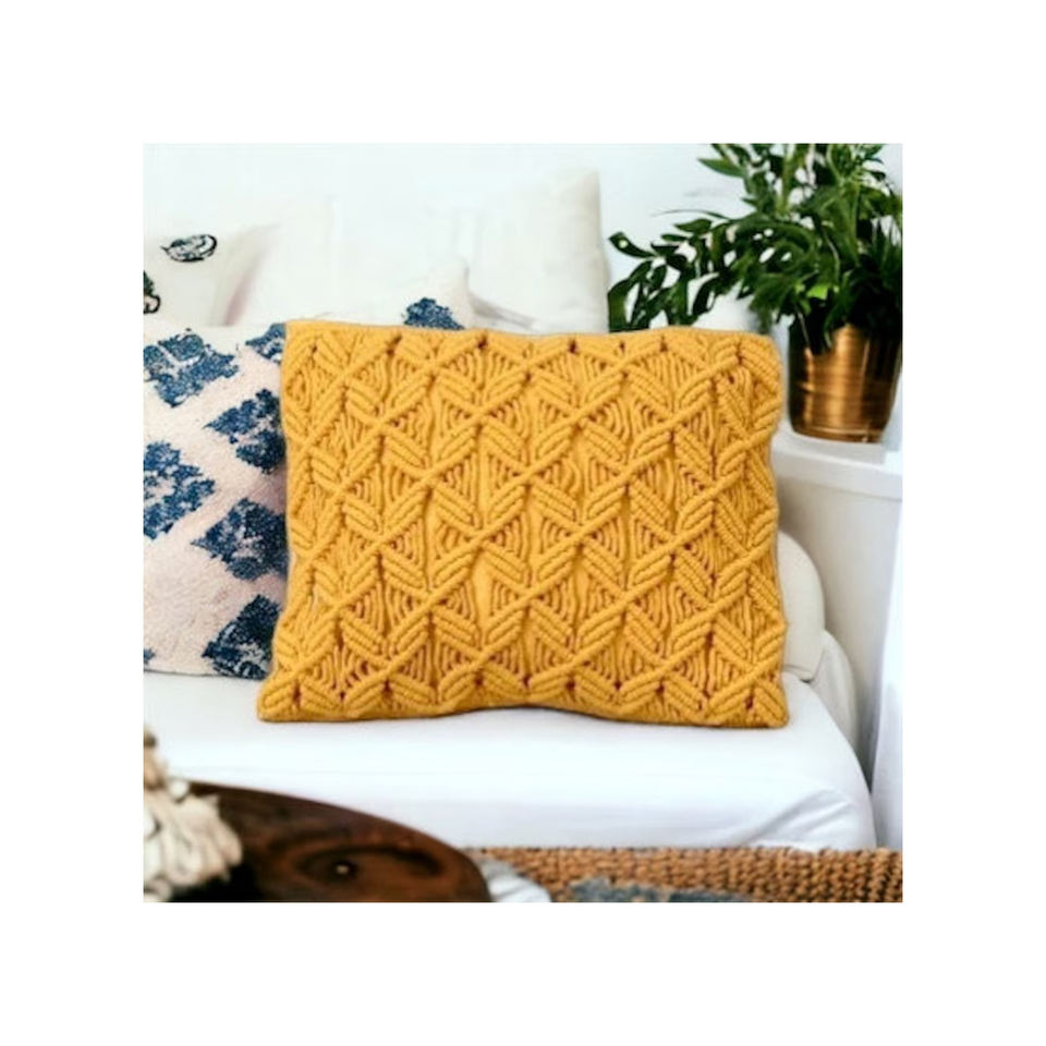Best Price Mustard Macrame Boho Decor Pillow Cover and Cushion Case for Living Room or Hotel Use