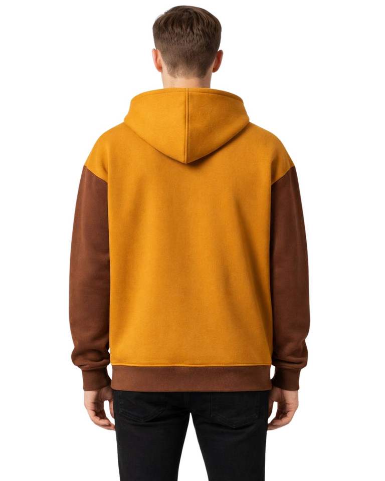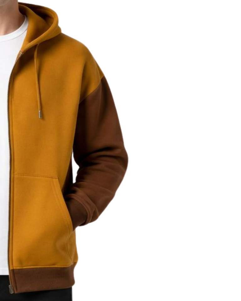 Mustard Yellow And Brown Two Tone Zip Up Hoodie Men Oversized Fleece Cotton Hooded Sweatshirt Casual Streetwear Fashion