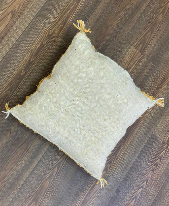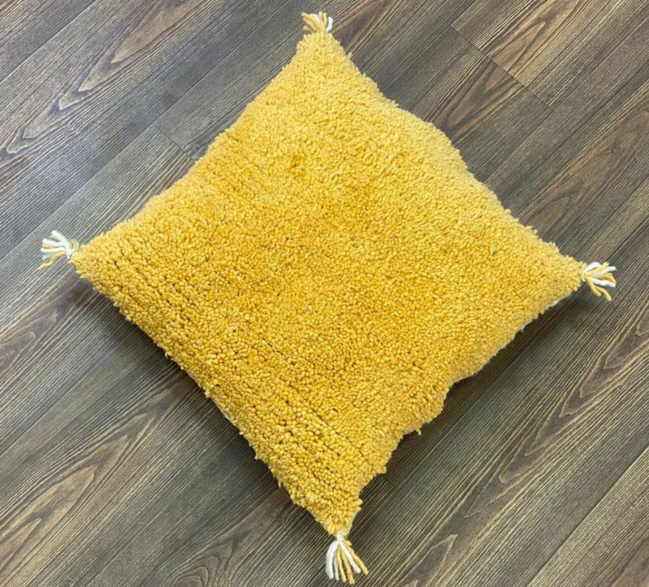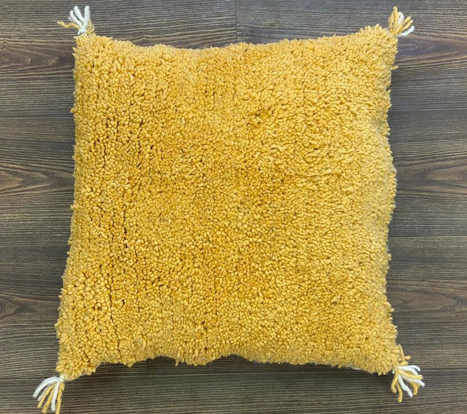 Mustard Yellow Genuine Wool Handmade Square Throw Pillow Covers Amazigh Style Cushion for Hotel Home Decor