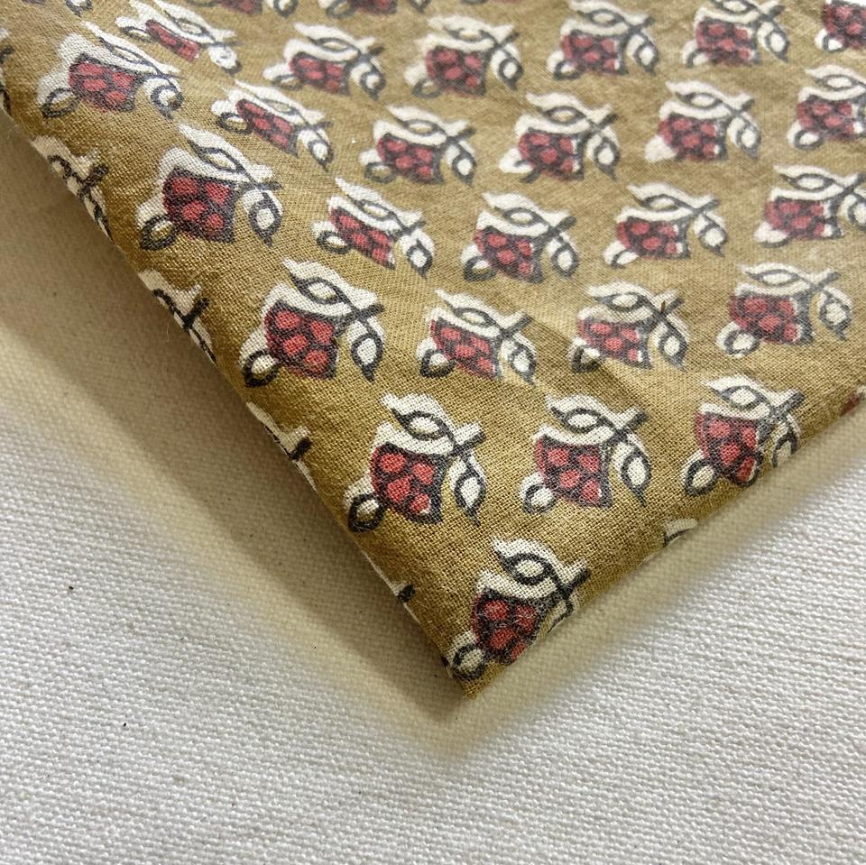 Mustard Yellow Hand Block Printed Cotton Fabric Red Floral Buti Design