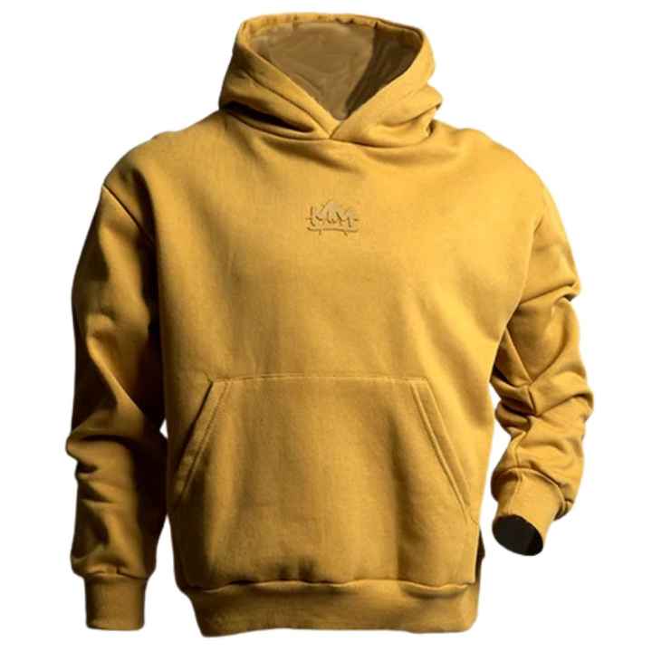 Mustard Yellow Pullover Hoodie for Men Heavyweight Cotton Fleece Kangaroo Pocket Hooded Sweatshirt Casual Streetwear