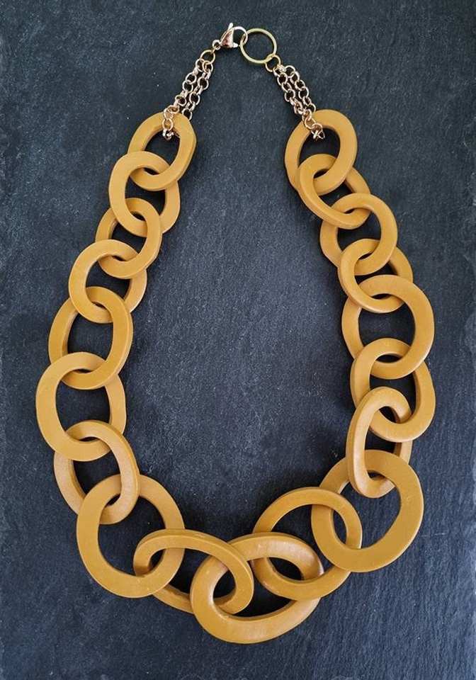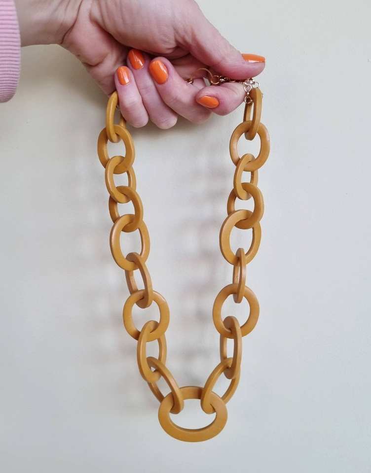 Mustard Yellow Resin Craft Chain Link Necklace Chunky Statement Synthetic Stone Style for Women