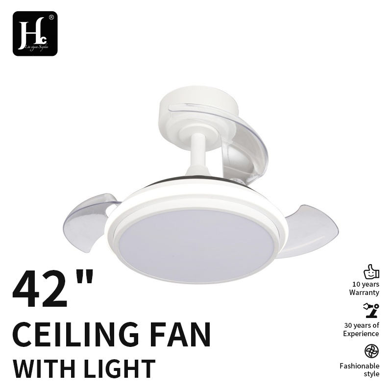 Mute Design Professional Indoor Home Living Room 36 Inch 42 Inch Retractable Invisible BLDC Motor Led Ceiling Fan With Light