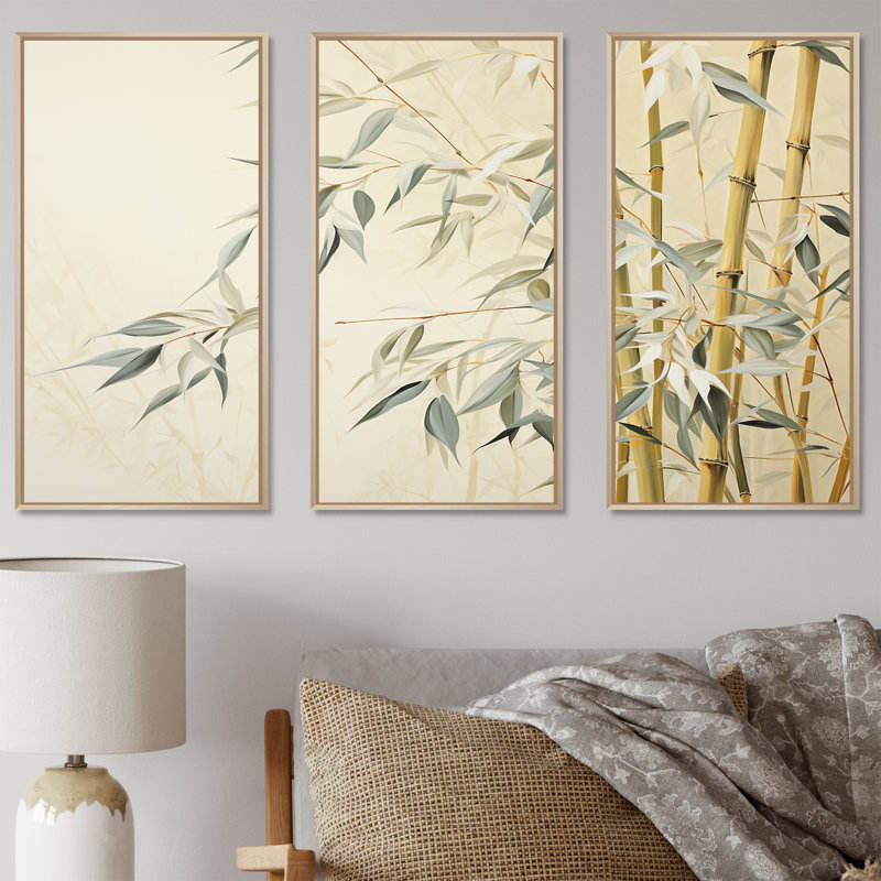 Muted Bamboo Embrace VI Wall Art Set Elegant Bamboo Crafts for Living Room Decor