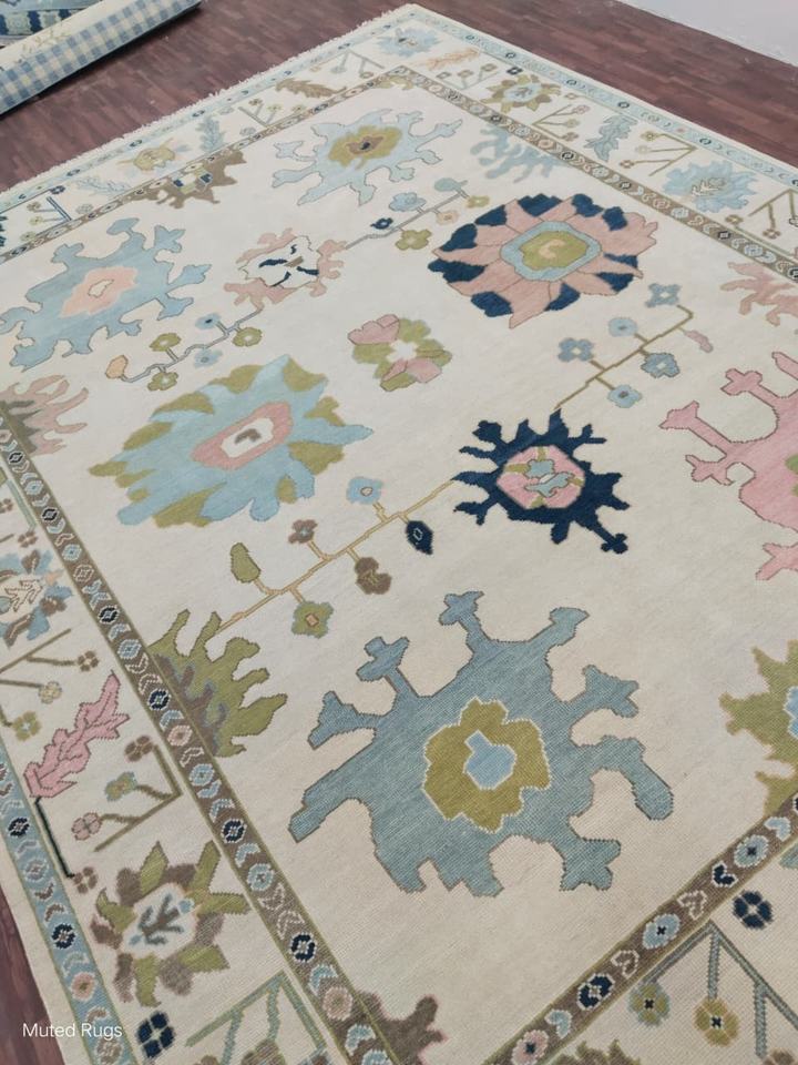 8x11 High Quality Vintage Rug,:HAND KNOTTED Muted oushak rug, pastel wool rug