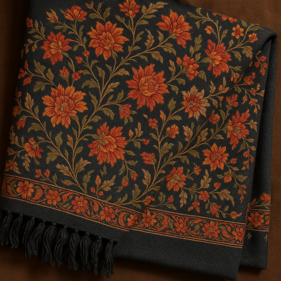 MyEthnix Winter Lightweight Premium Quality Pure Wool Long Rectangular Polka Dot Reversible Durable Shawl Embroidery for Women