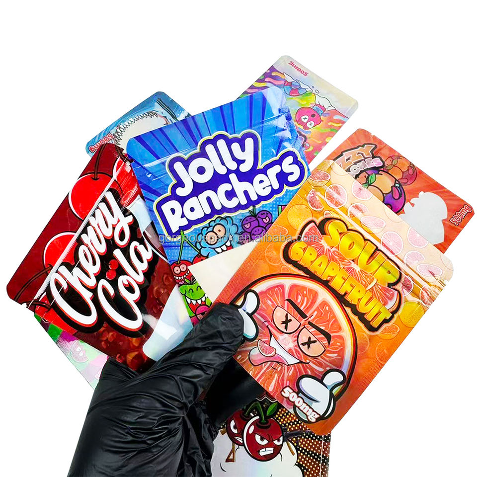 Mylar Bag And Box With Window Smell Proof Edible Gummy Custom Printed Plastic Cookie Packing Baggies Ziplock Herb Aluminum Foil