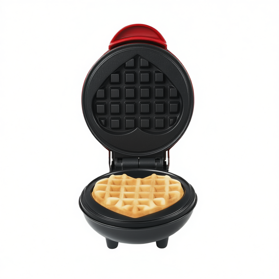 Myrva Mini Heart-Shaped Waffle Maker With Non-Stick Plates And Cool Touch Exterior For Household Use, Electric, Mechanical Contr