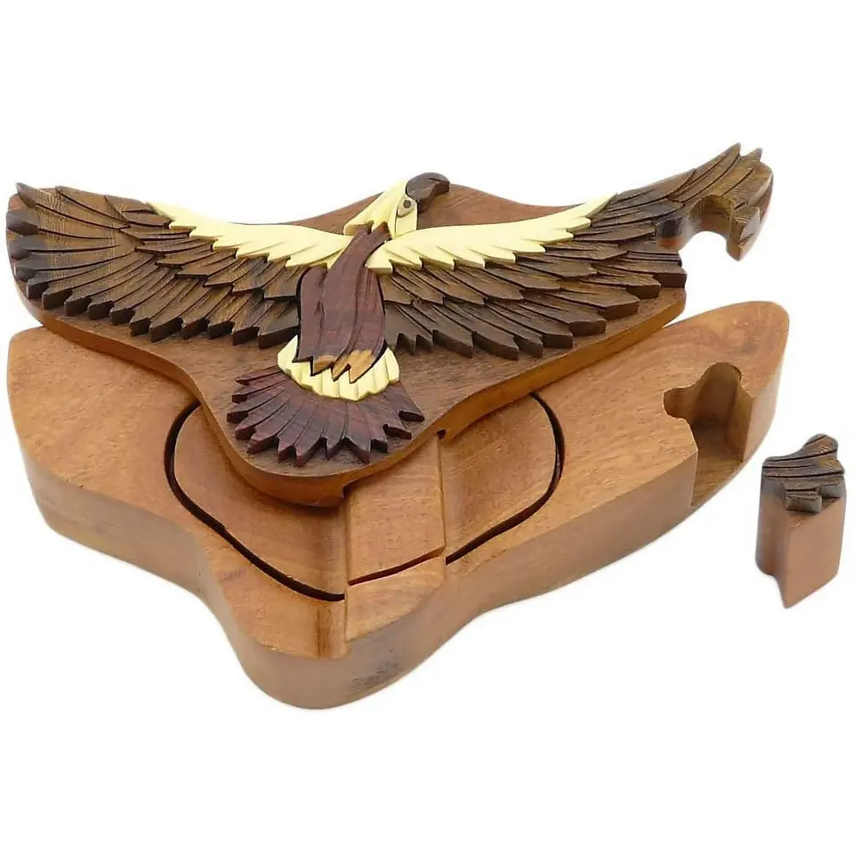 Mysterious Secret Hidden Boxes 3D Eagle Natural Wooden Puzzle Box With Custom Designs for Wholesale