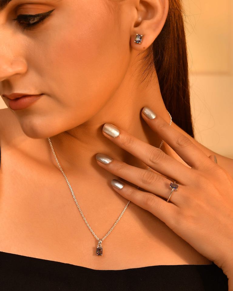 Mystic Prism Sterling Silver Necklace Earring Set Color-Changing Mystic Topaz Stones Trendy Women's for Engagement Wedding