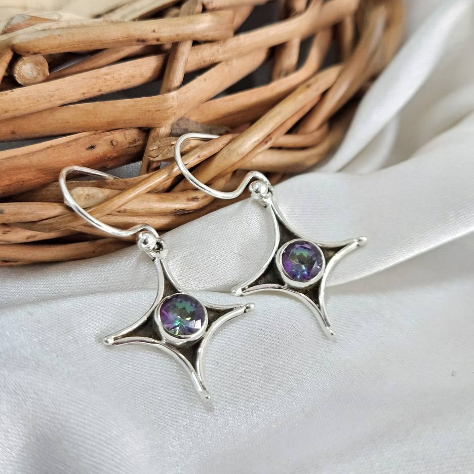 Mystic Topaz Gemstone Drop Earrings 925 Sterling Silver Handmade Cute Dainty Wedding Gift Daily Wear Jewelry