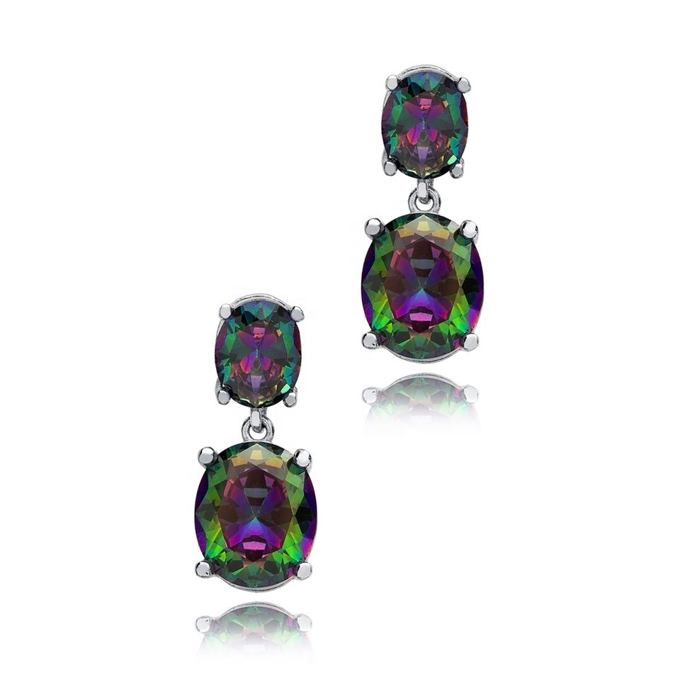 Mystic Topaz Stone Oval Shape Cluster Earrings Wholesale Handmade 925 Silver Sterling Jewelry
