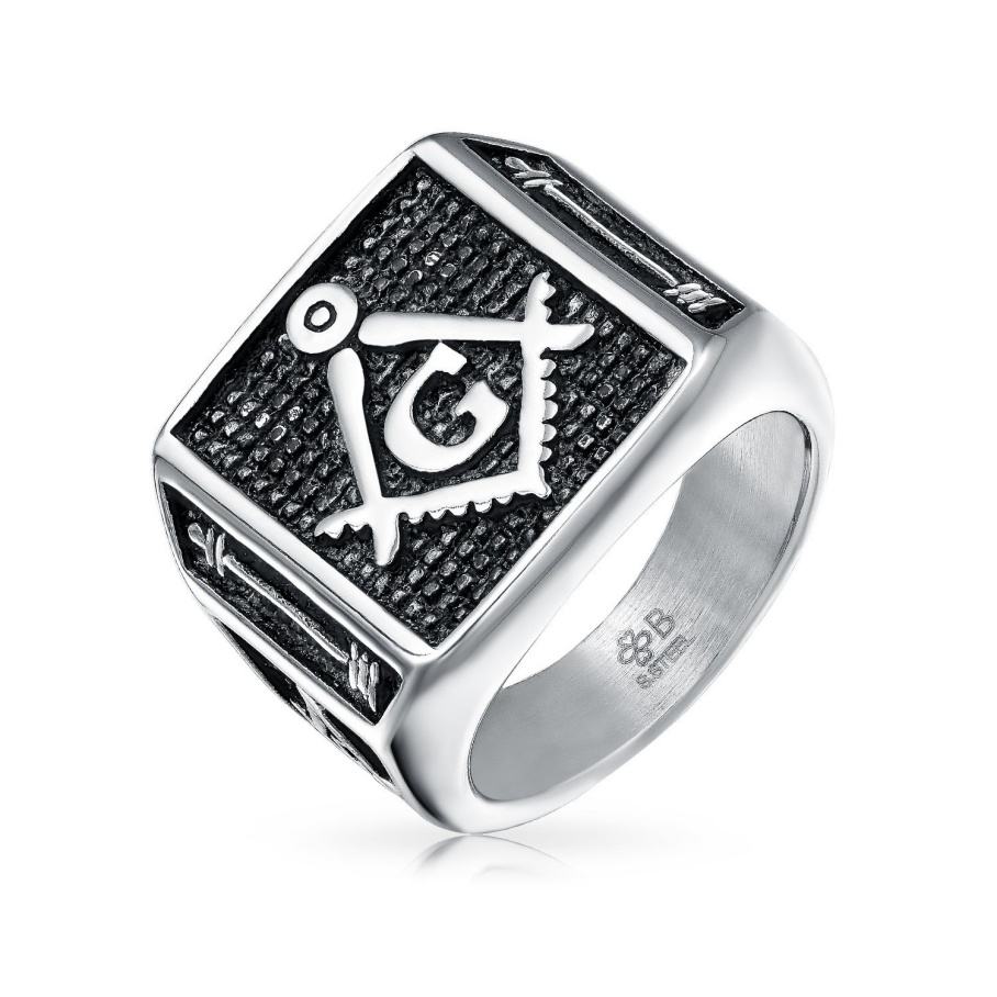 Mystique Black Signet Freemason Square Compass Stainless Steel Ring for Men Gift