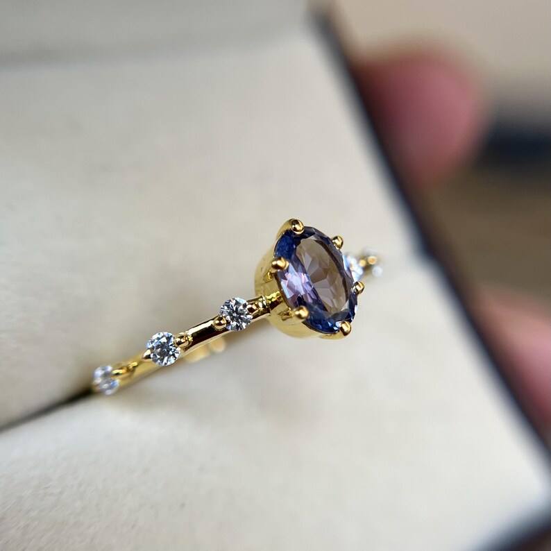 Mystique Oval Cut Tanzanite Zircon Halo Ring 18K Solid Gold Plated Fine Jewelry Handcrafted December Birthstone