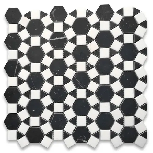 N395XH Sunflower Thassos Marble Ring Mosaic Tile Nero Marquina Black Honed Premium Accessory