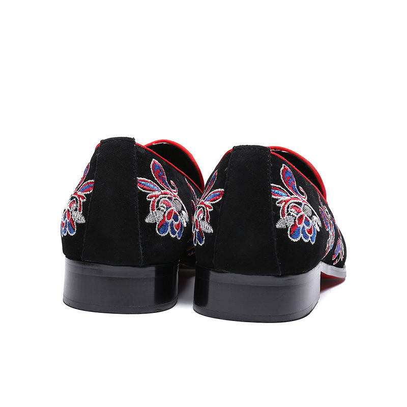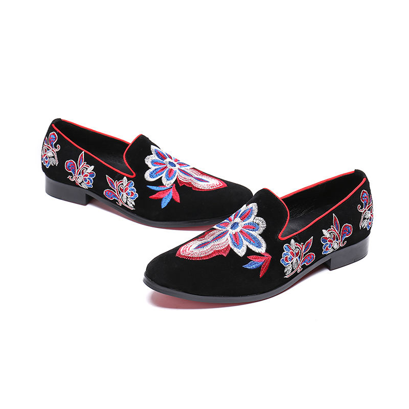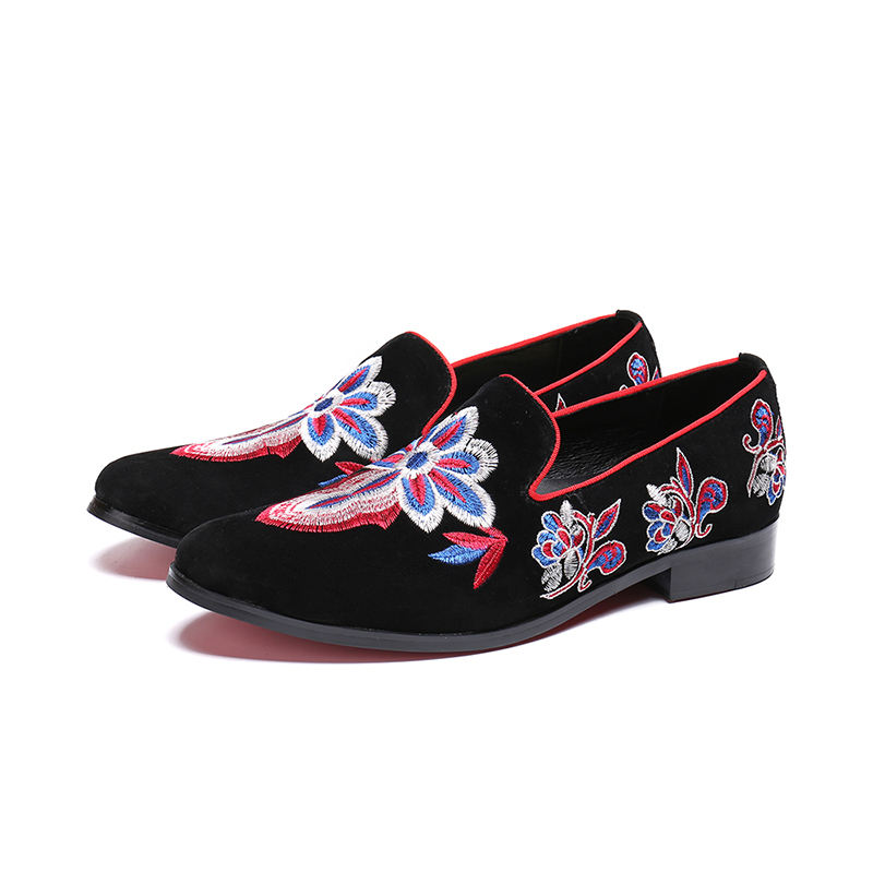 NA084 Mens Fashion Velvet Embroidery Loafers Pointed Toe slip on Flat Casual Shoes Driving Mocassins Black Shoes EUR38-46