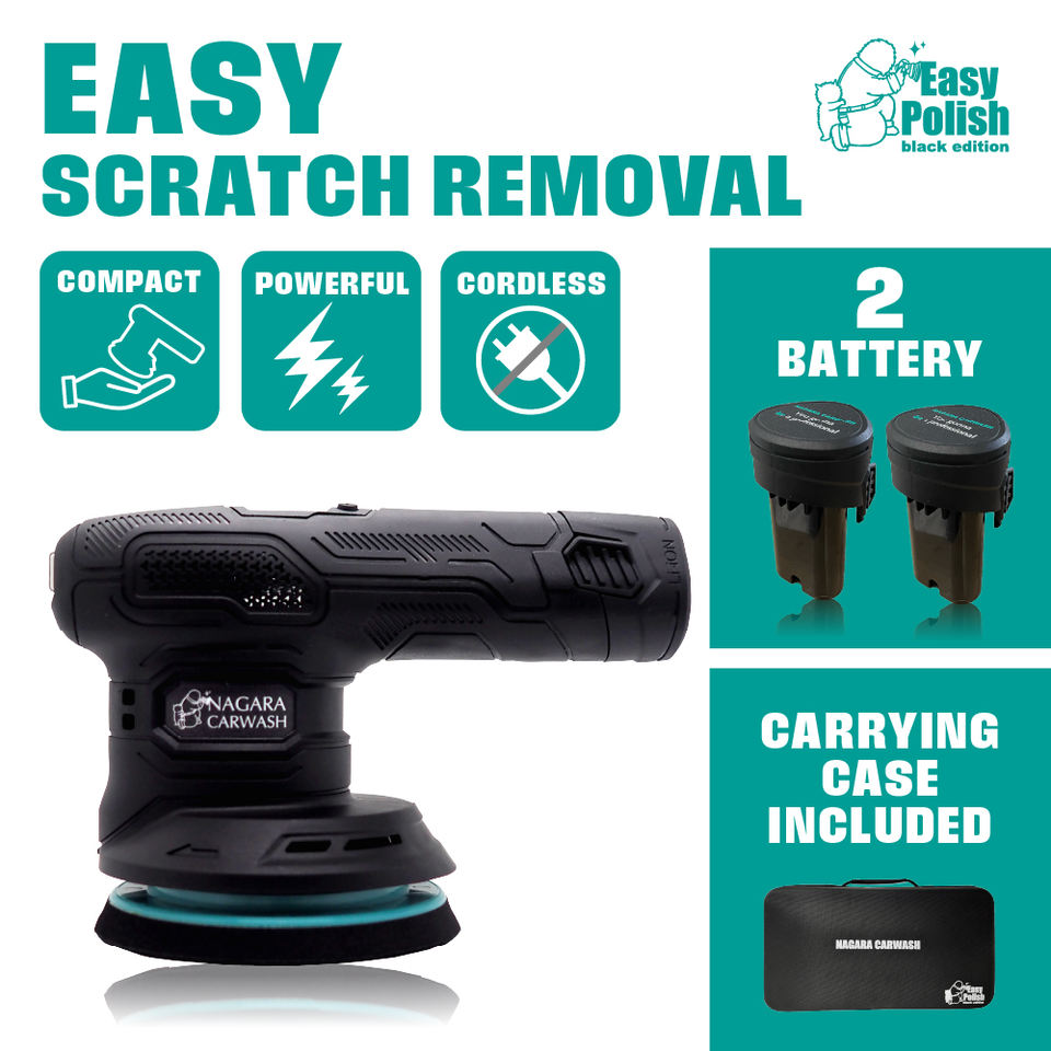 NAGARA CARWASH P24 Black Cordless Mini Quick Detailer Car Polisher Liquid Polish Sander Equipped Two Detachable Batteries Made