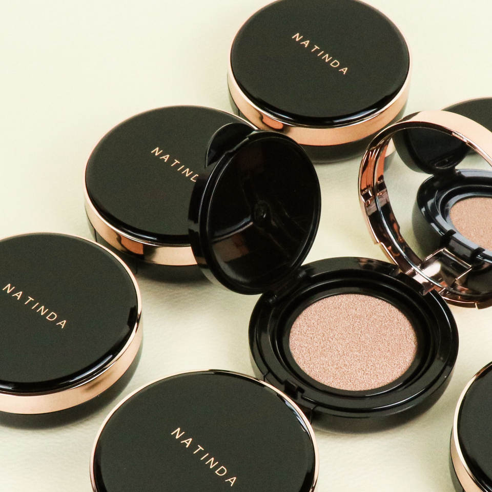 NATINDA Aura Perfect Cover Concealer Foundation Moisturizing Nourishing Liquid Cushion SPF 50+ Sunscreen Dark Skin Tone Pressed